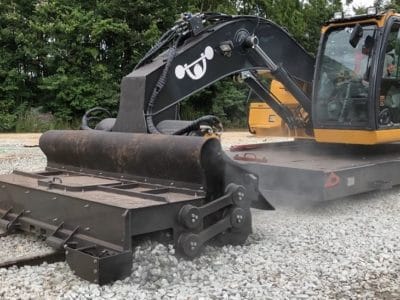 Equipamentos dedicados a manutenção de lastro prévia à manutenção de dormentes.