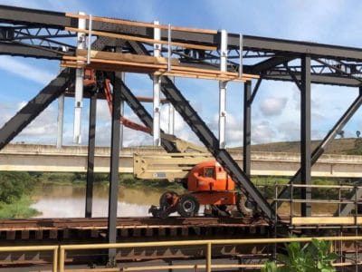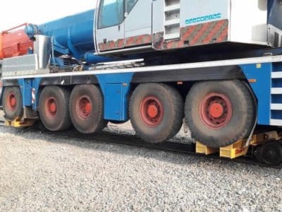 Troles desenvolvidos para movimentação ágil de Guindastes Rodoviários na ferrovia.