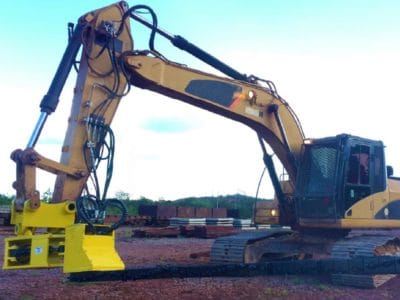 Equipamento autoportante, para substituição de dormentes de madeira ou aço. Podendo ser operada por comando manual ou controle remoto.
