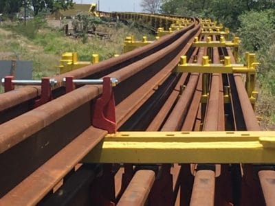 Segurança na manipulação de Trilhos Longos, principalmente em locais de construção de grade ferroviária.