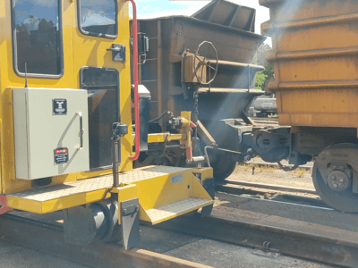 O Dispositivo Mecanizado para Desengate de Vagões (DMDV) foi desenvolvido, especificamente, para a mecanização da operação de separação de vagões em estação de triagem (Hump Yard). A operação pode ser realizada tanto a bordo do equipamento quanto de forma remota. Abordo do equipamento o operador conta com joysticks, com sistema piloto ergonomicamente corretos, que oferecem um controle rápido e suave, com menos movimento e esforço, além de uma Interface de Comando IHM, a partir da qual é possível monitorar toda a operação e as sequências de cortes programadas. Se optar pela operação remota, ela é realizada a partir de um transmissor com controle remoto e monitor de vídeo.