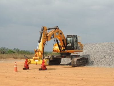 A adaptação do equipamento para utilização simultânea de duas garras incrementa a produtividade da operação e otimiza a utilização do equipamento, com grande capacidade de carga e de tração.