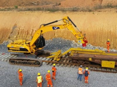 As garras hidráulicas para trilhos GHT68-SM possibilitam ao equipamento o trabalho no carregamento e descarregamento de trilhos curtos ou trilhos longos soldados, tanto para manutenção quanto para construção de novos trechos de ferrovia.
