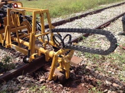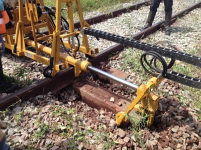 O princípio de funcionamento do dispositivo se dá pelo acionamento de seu sistema hidráulico. É este que possibilita a movimentação e o “abre-fecha” da garra de dormentes.