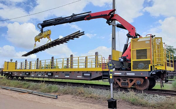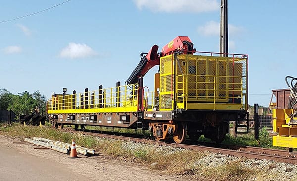 Podendo armazenar componentes de até 20 metros, o Vagão conta com guindaste e balancim hidráulicos, especificados para esta finalidade. Assim, o mesmo vagão pode transportar vários