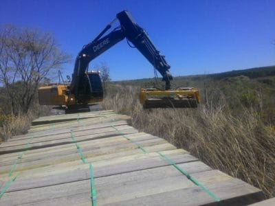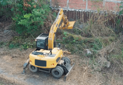 Um implemento rotativo que pode ser instalado em escavadeiras, retroescavadeiras e carregadeiras de pneus para a supressão vegetal.