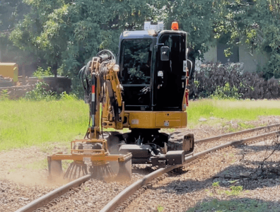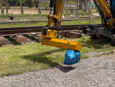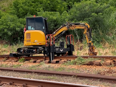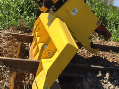 Acessório hidráulico com aplicação em operações de limpeza da região dos dormentes e entre trilhos.