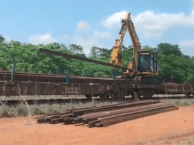 Movimentação de trilhos de diversos comprimentos (até 360 metros) e em diferentes posições, inclusive tombado.