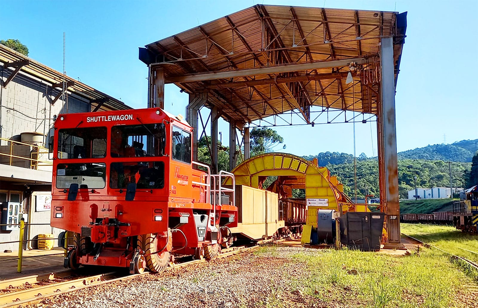 Movimentação de vagões com eficiência e sustentabilidade, capaz de movimentar até 60 vagões carregados sem acoplamento de transferência de peso.