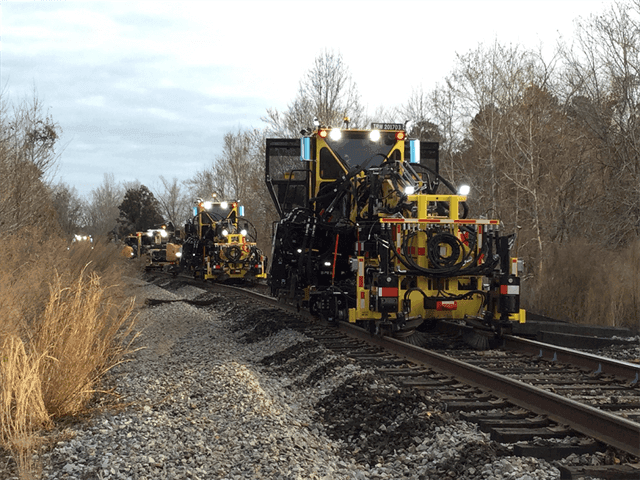 Máquina com sistema de manuseio de placas armazenado para maior versatilidade com amarrações de madeira perto de interruptores, cruzamentos e certas condições de operação.