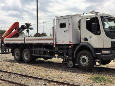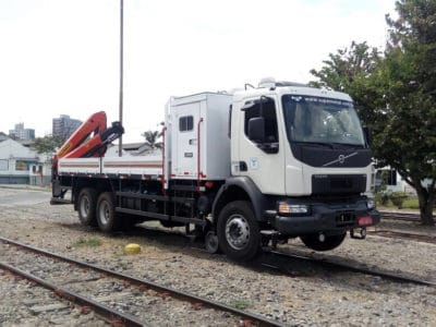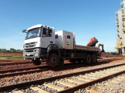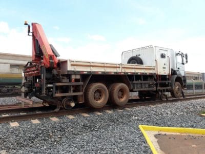 A robustez dos kits ferroviários permite ao veículo se locomover sobre a via férrea em velocidades de até 80 km/h – em condições ideais de tráfego .