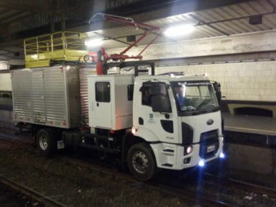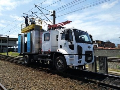 A robustez dos kits ferroviários permite ao veículo trafegar sobre a via férrea em velocidades de até 60 km/h.