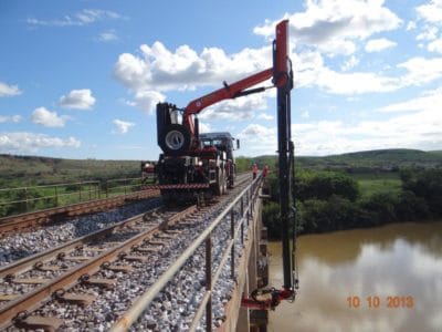 A robustez dos kits ferroviários permite ao veículo trafegar sobre a via férrea em velocidades de até 40 km/h.