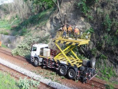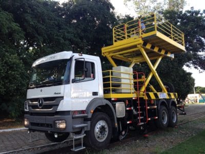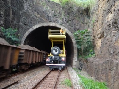 A robustez dos kits ferroviários permite ao veículo trafegar sobre a via férrea em velocidades de até 40 km/h.