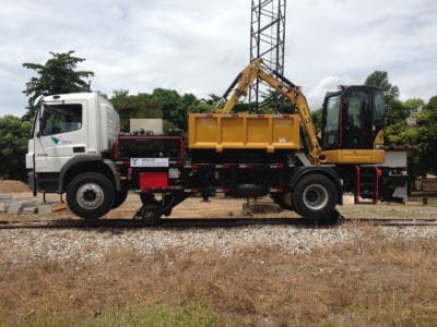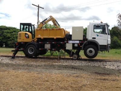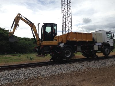 A robustez dos kits ferroviários permite ao veículo trafegar sobre a via férrea em velocidades de até 40 km/h.